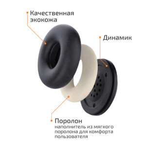 - Сменные амбушюры выполнены из экокожи с поролоновым наполнителем. Они очень мягкие и удобные.