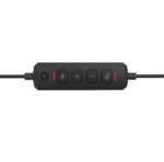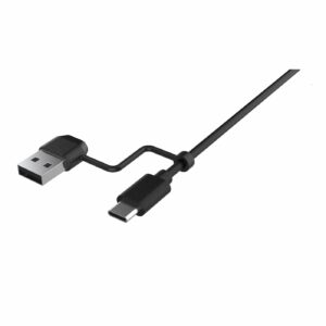 - Шнур имеет длину 240 см. На шнуре установлен разъем USB-C и переходник USB-A, привязанный к шнуру тросиком для предотвращения утраты. Два разъема делают гарнитуру универсальной и совместимой со многими устройствами.